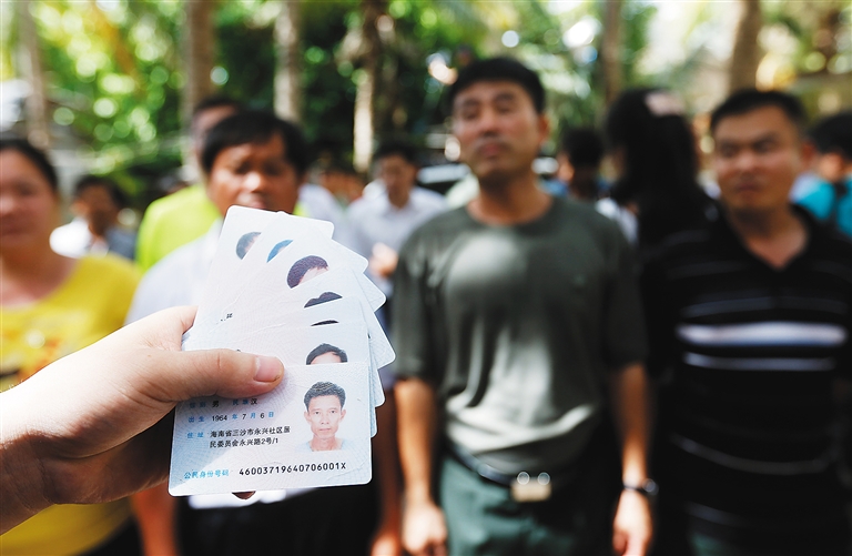 “我们是地道的三沙人。”一张小小的“三沙市居民身份证”,成为许许多多三沙居民的骄傲。从2013年7月开始,三沙市向驻岛人员发放居民身份证和居住证,到目前已签发“三沙市居民身份证”300多张,人口和户籍管理进一步加强。