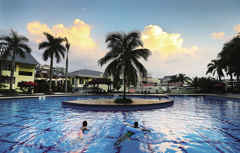沿兰洋温泉度假区一期市政道路前行,该景区拔地而起的建筑群正在长高。海南中金成长生态旅游发展有限公司总工程师孙照伟介绍,该公司计划总投资20亿元,分三期建设100万平方米的商住区。所有工程建成后,将成为集温泉风光游览园、温泉度假酒店等配套设施于一体的高端温泉旅游度假区。