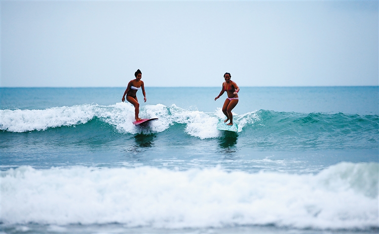 “在国内冲浪,没有比万宁更好的地方了!”在日月湾,来自北京的冲浪爱好者Fiona抱着冲浪板向大海奔去。在连续举办多届冲浪节后,日月湾已经不再是那片“藏在深闺人未识”的美丽海湾,开始成为中国冲浪板图的重要一站。