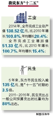 据统计,五年来,东方市民生投入逾135亿元,是“十一五”时期的3.5倍。2011-2015年,民生支出占一般公共预算支出的比重均为80%左右。