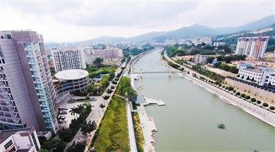 夜幕下的南圣河畔,灯火璀璨,市民们正沿着河堤漫步;“三月三”广场,花团锦簇,各种文体活动正在开展,欢声笑语不断。