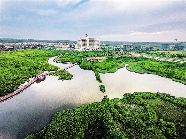 在澄迈县老城经济开发区的美仑河畔,一排排崭新的现代建筑跃然眼前。咖啡走廊、时尚商场、写字楼、活力广场……老城经济开发区正从当年的传统工业开发区,向新型生态现代化产业方向转型升级。