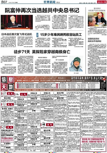 | 海南日报 世界新闻综合 019 2016-01-281 2016年01月28日 星期四 |