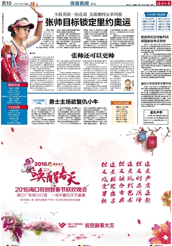 | 海南日报 体育新闻综合 022 2016-01-281 2016年01月28日 星期四 |