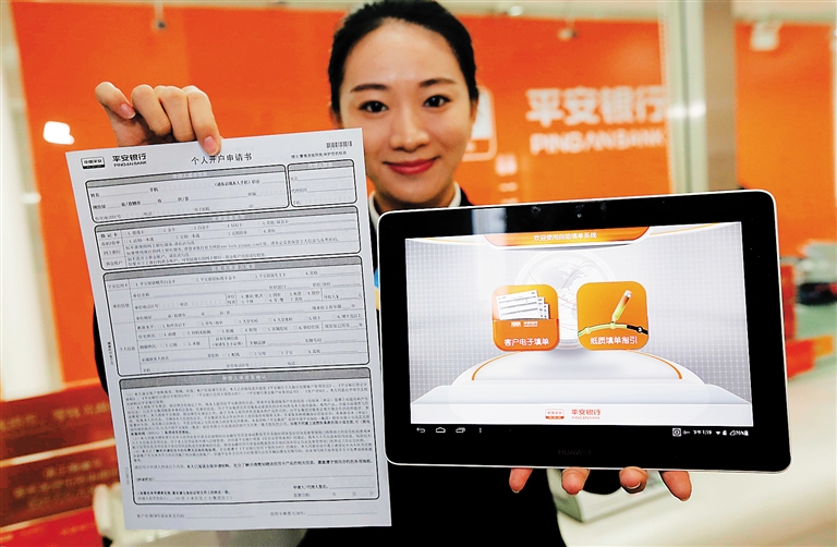 这一系列智能化机具的配备,可以为市民提供“全流程、一站式、多功能”的金融服务。“客户若办理个人开户或转账汇款业务,大堂经理将引导客户通过移动pad预录信息,无需手工填单。”该行大堂经理介绍说,客户临柜后只需出示身份证及排队票号,柜员即可获取智能填单信息,为客户办理相关业务,客户开户全程只需要一次签字。