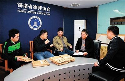 会外 ➡ 1月25日午间,廖晖委员(右一)趁着会程间隙,来到省律协,与几位律师交流意见,进一步完善他的提案。 本报记者 张杰 实习生 胡靖明 摄