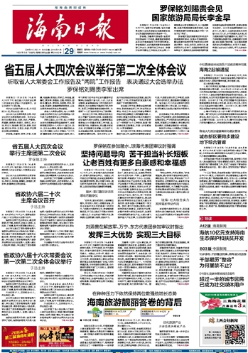 海南日报 头版 001 2016-01-291 2016年01月29日 星期五