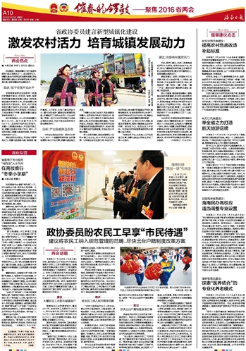 海南日报 催春的锣鼓——聚焦2016省两会 010 2016-01-291 2016年01月29日 星期五