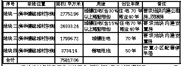 二、用地规划条件及开发建设要求:用地规划条件详见海规函[2013]1429号的规划要求。地块上有原项目竞得人所建安置房,土地使用权取得人须继续履行原项目竞得人与海口市统筹城乡发展(集团)有限公司签订的有关合同和补充协议,按演丰镇(墟)片区棚户区改造征收方案确定的安置方案和价格移交海口市统筹城乡发展(集团)有限公司用于演丰镇墟棚户区改造项目征收安置工作。三、公示时限:公示时限为30个自然日,自市政府批准后公告之日起计。四、意向用地者申请方式:在公示时限内,中华人民共和国境内外个人、法人、其他组织对本公示所列的地块有意向的,以书面方式向海口市国土资源局提出:1、意向用地者申请书原件;2、意向用地者营业执照。地址:海口市长滨路市政府第二办公区15号北楼二楼2013室,联系人贾成治,电话0898-68720574。五、确定供地方式:1、公示时限内,若地块只有一个意向用地者,我局按《协议出让国有土地使用权规范》的规定以协议方式出让该宗地土地使用权。2、公示时限内,若地块有两个以上意向者,该地块进入招拍挂供地程序。
