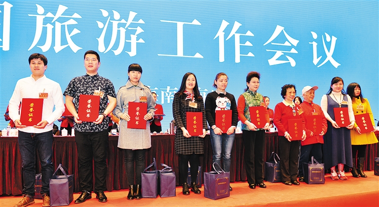 1月29日,中国好游客、好导游代表上台领奖。当天,全国旅游工作会议在海口举行。
