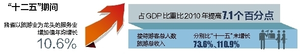 国际旅游岛建设六年来,旅游业已经成为新常态下我省重要经济增长点。副省长何西庆在交流中专门提供了一组数据:“十二五”期间,我省以旅游业为龙头的服务业增加值年均增长10.6%,占GDP比重比2010年提高7.1个百分点,接待游客总人数、旅游总收入分别比“十一五”末增长73.6%、110.9%。2015年旅游人数增长11.4%,旅游总收入增长13%,仅免税品商品收入就达到55.4亿元。