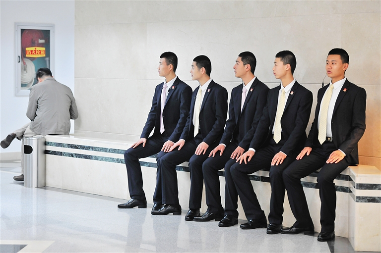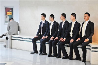 一丝不苟 1月29日,两会间隙,就地休息的安保人员也是正襟危坐、一丝不苟。连日来,忙碌在会场内外的工作人员用他们的辛勤付出,为会议的顺利召开提供了保障。本报记者 王凯 摄