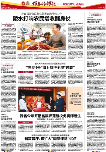 海南日报 催春的锣鼓——聚焦2016省两会 010 2016-01-301 2016年01月30日 星期六