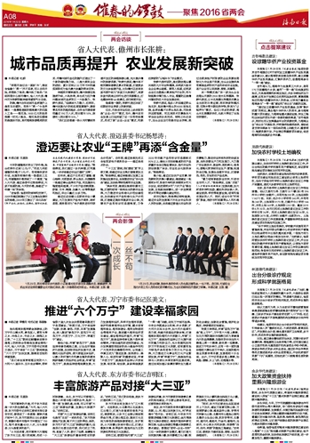 海南日报 催春的锣鼓——聚焦2016省两会 008 2016-01-301 2016年01月30日 星期六
