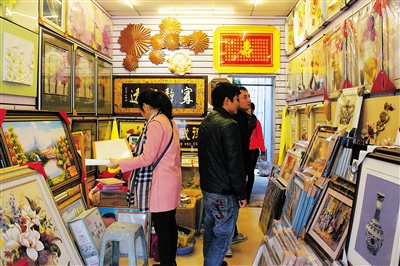 春节将至,年味渐浓。海口博爱南路文化市场里的几间画廊像往年一样,人头攒动,挤满了置办装饰年货的市民。在规模较大、相对专业的文宇画廊里,店长李鹏岳一刻不停地忙碌着。他告诉笔者,“接近春节了,客人相对多一些”。