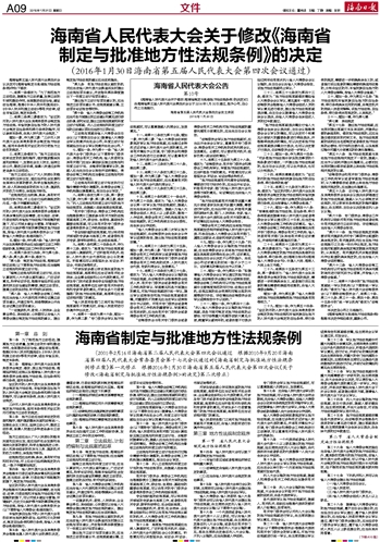 海南省制定与批准地方性法规条例