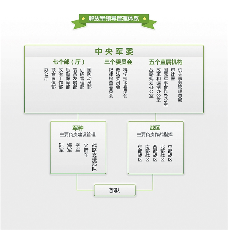 杨宇军:以原7个军区机关相关职能、机构为基础,充实军种指挥和保障要素,组建5个战区机关,均为正大军区级,归中央军委建制领导。随着战区调整组建任务的完成,原沈阳军区、北京军区、兰州军区、济南军区、南京军区、广州军区、成都军区番号撤销。