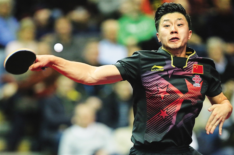 1月31日,在2016年国际乒联巡回赛德国公开赛男单决赛中,中国选手马龙以4:1战胜白俄罗斯选手萨姆索诺夫,夺得冠军。图为马龙在比赛中回球。