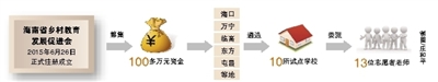 乡村教育一向是短板,乡村缺少好的老师,乡村教育需要更多温暖更多关注。2015年6月26日至今,一个名叫海南省乡村教育发展促进会的社会组织,在海口、万宁、临高、屯昌和东方等地乡村学校,正在默默地为乡村教育出力。他们招聘乡村最缺的英语老师和体育老师,并把这些老师送到农村去任教,他们负责给这些志愿者老师发生活补贴,他们尽力行动呐喊,让更多的人参与到关注和切实帮助乡村教育的步伐中来。