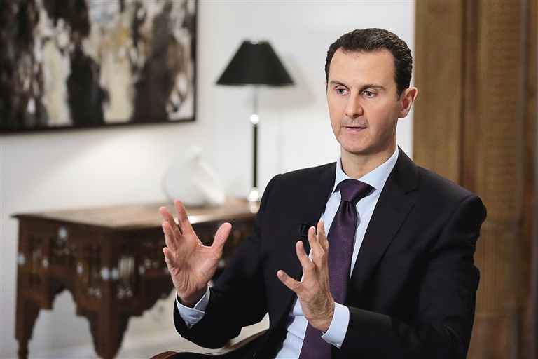 2月11日,在叙利亚首都大马士革,叙利亚总统巴沙尔·阿萨德接受采访。 叙利亚总统巴沙尔·阿萨德11日接受外国媒体采访时说,叙政府军将重夺失地直至恢复对叙利亚全境的控制,而要想解决叙利亚危机,政治谈判与打击恐怖主义缺一不可。 新华社/法新