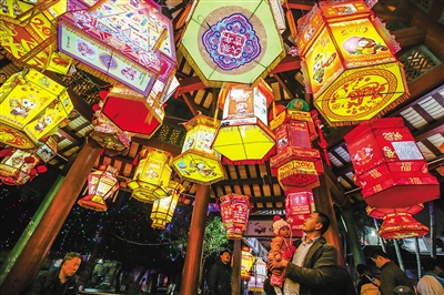 2月18日,猴年元宵节即将到来,海口市府城三角公园传统花灯流光溢彩,吸引不少市民观赏。据了解,元宵换花节当天,府城将举行千灯照春、民俗装马匹、雄狮闹春、琼剧庆春、书画贺春、灯谜游春、许愿祈福等系列活动。本报记者 张茂 摄