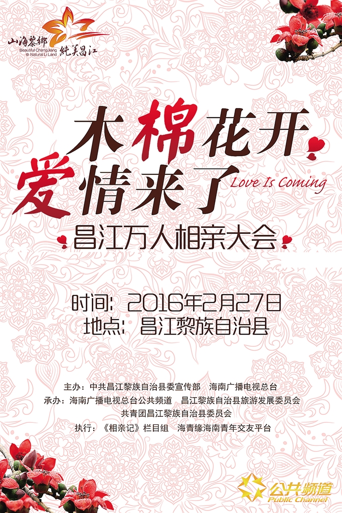 此外,趁着木棉花开,清华大学师生微电影创作小组也正在昌江采风创作,海南电视台“木棉花开,爱情来了”万人相亲大会活动、侯耀华领衔的“情系昌江,激情唱响”——石焱音乐大型公益演出活动也将逐一在昌江展开。