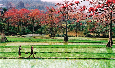 1月中旬—2月中旬:王下乡皇帝洞木棉观景区、南尧河十里画廊木棉观景区