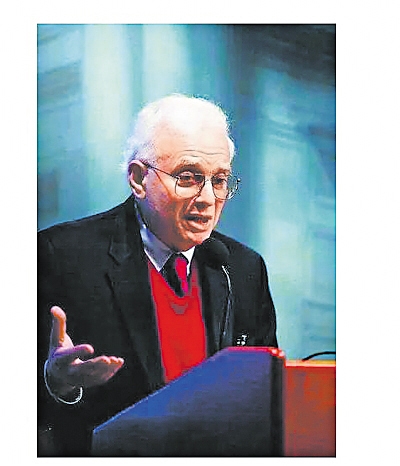 看孔飞力的照片,是一幅授课场景,满头银发,大概正在讲述什么,手在舞动,犹如吟唱。