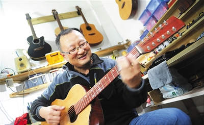 “这么多年,我做出来的吉他有时一年也卖不出一把,但我坚持做,不是为了挣钱,只是想把这份手艺做精,有机会的话,能够有传承人就更好了。”王安兆说。