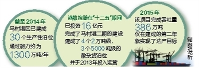 港航控股公司负责人表示,“十三五”期间港航控股将计划投资约90亿元建设马村港三期1个3.5万吨级散货码头、2个5万吨级和3个1万吨级集装箱码头,马村港四期4个7万吨级和3个2万吨级集装箱码头,以及马村东部岸线资源整合,在解决秀英港区搬迁的同时,满足我省对接国家“一带一路”战略的发展需求。