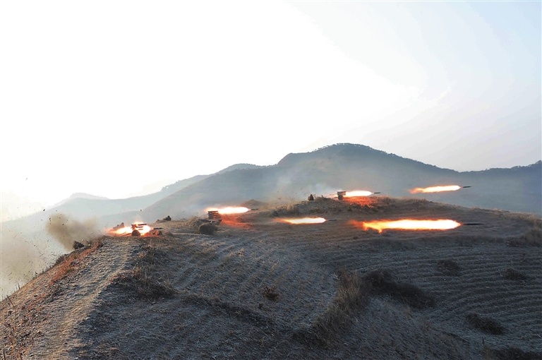 这张朝中社2月21日提供的照片,显示的是朝鲜最高领导人金正恩日前指导朝鲜人民军大联合部队实战训练的场面。 新华社/朝中社