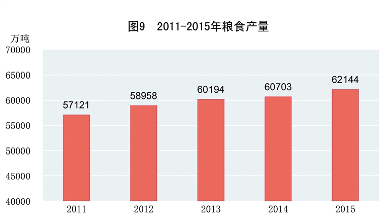 我国粮食产量连年增长,2015年喜获“十二连增”。这是在经济增速逐年放缓、自然灾害频发、资源约束趋紧、生产成本持续攀升、国内外农产品价格倒挂加剧以及务农老龄化愈发明显的情况下砥砺而成,尤其是近3年来粮食生产高位爬坡,更是难能可贵,成为经济社会发展最突出亮点之一。