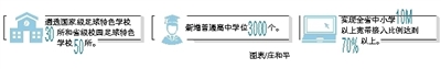 我省今年出台《海南省普通高中学校基本办学标准》。新建、改扩建一批普通高中学校,新增普通高中学位3000个,扩大优质教育资源覆盖面。指导督促市县创建1-2所“省一级学校”。新建一批普通高中标准化实验室。鼓励普通高中学校增设选修课程、开展特色发展创新实验,有效开展综合实践活动。