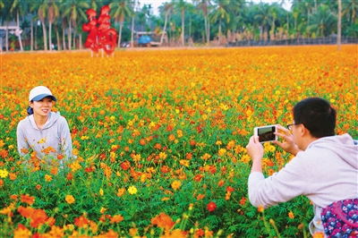 田园中赏花,如今已经成为了一件时髦事儿,琼海龙寿洋花海同样花开正艳。“在离城市这么近的地方,有这么漂亮的一片花海,真是太难得了!”2月28日上午,正带着女友在花海赏花的吴正龙说。琼海龙寿洋国家农业公园位于嘉积城区附近,从嘉积城区出发,车程仅有五六公里。而公园内的花海,刚好处于这片占地万亩的国家农业公园的中间,看尽农业公园的绿意美景,突然发现一片花海,那种美上加美的好心情,简直无法用语言来形容。