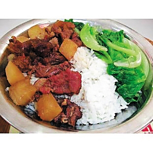 海南牛腩饭和海南鸡饭一样,在每一个海南人的心目中都是最难忘的家乡的味道。牛腩饭的名声虽然不比海南鸡饭的名声大,但它是出现在海南最早的套餐之一。在海口,牛腩饭店分布广泛,新华南、博爱路等老街上集中着不少牛腩饭店。这些店的门面一般都很小,但即便如此也挡不住牛腩饭食客的热情,生意火爆。