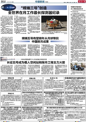 “嫦娥三号”创造 全世界在月工作最长探测器纪录