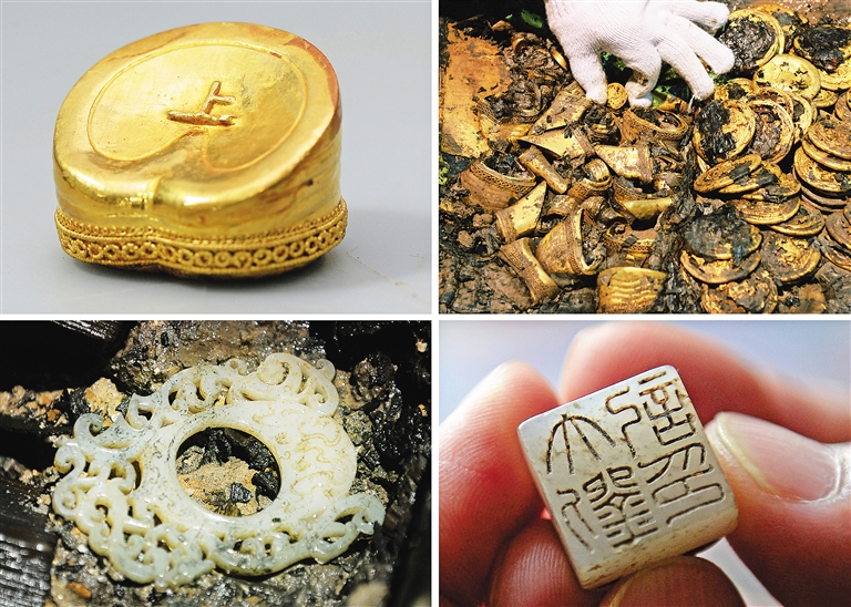 汉代皇帝和高级贵族死后穿用的殓服是用玉片制成的玉衣。其中,皇帝及部分近臣的玉衣以金线缕结而成,称之为“金缕玉衣”。新中国成立以来,全国已发现玉衣逾20件,金缕玉衣仅5件。但海昏侯墓却没有发现金缕玉衣。
