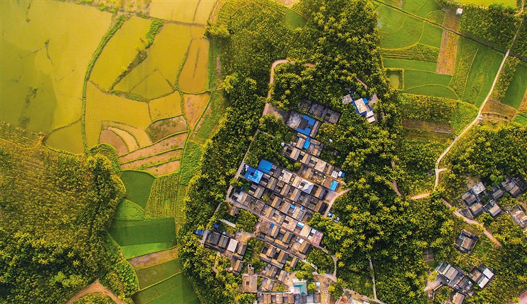 俯瞰博鳌机场旁正在建设发展中的琼海美丽乡村。