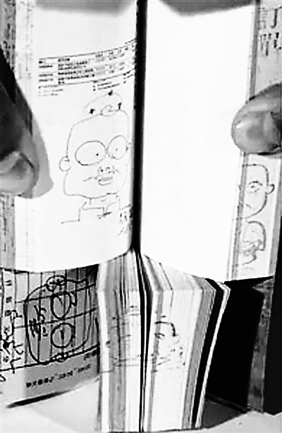 抚摸封面,编织袋材质的书籍专用防潮包装纸,具有独特的质感;翻拨内页,柔软泛黄的“速写纸”增添了历史的韵味。书的左侧被“裁切”了三刀,形成四个可以翻动的小册子,每一页都是神态各异的漫画肖像。书中大量折页也“暗藏玄机”,有的裁开,还能看到隐藏在里面的老照片。这本书历经20多道人工匠心的装订与制作。