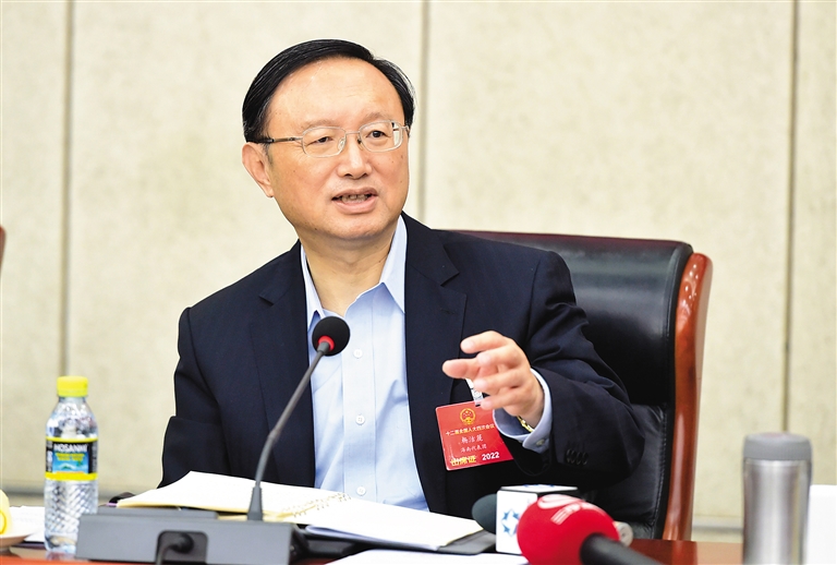 无论是在审议中,还是在接受海南媒体采访时,杨洁篪谈及海南的资源禀赋总是不吝赞美,对海南的发展成绩给予肯定和祝贺。他指出,过去5年,海南省坚持科学发展、绿色崛起,充分发挥生态环境、经济特区、国际旅游岛三大优势,经济社会发展取得了十分显著的成就。就外事工作来讲,海南省委、省政府高度重视外事、侨务、维护海洋权益方面的工作,有不少亮点。比如:加快三沙建设;主动融入国家“一带一路”战略;服务党和国家总体外交、圆满完成博鳌亚洲论坛年会的各项服务保障工作;加快博鳌乐城医疗旅游先行区建设,为海南全面建设国际旅游岛迈出富有战略意义的一步等。特别是“十二五”期间,在中央统一部署和指挥下,海南加强与有关职能部门协调配合,有效维护了国家主权和海洋权益。