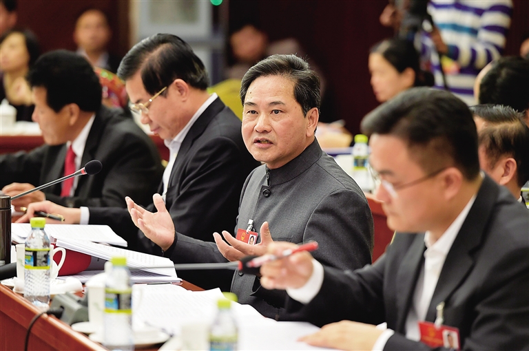 3月6日,参加十二届全国人大四次会议的海南团代表们围绕政府工作报告认真审议。代表们一致认为报告科学谋划“十三五”发展,对适应经济发展新常态、贯彻五大发展理念、推进供给侧结构性改革等重大问题作了系统部署,必将引领我们实现“十三五”良好开局。本报特派记者 王凯 摄