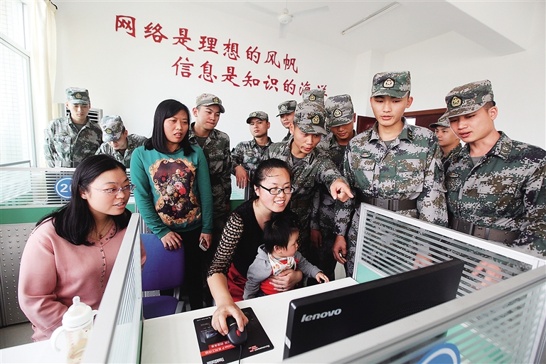 3月7日,在“三八”国际妇女节来临之际,海南省军区75576部队组织军嫂们走进军营,“探班”军人基层连队生活。军嫂们当天通过参观体验连队内务,参观军网之家,观看运动班特技表演等活动,加深了对部队的了解。