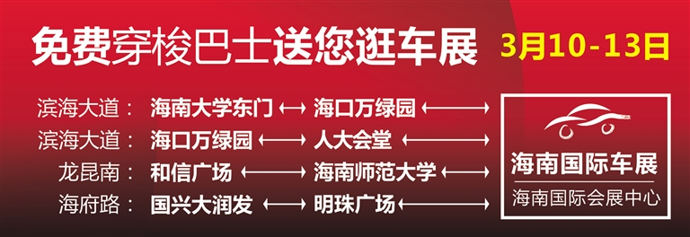 为方便市民前来观展,本届车展组委会还提供了免费穿梭巴士,市民可以在以下指定地点乘车。车展期间,每条路线多辆巴士轮番往返,平均30分钟一班车。海南国际汽车展览会,首届华南国际新能源汽车展览会诚邀您的到来!