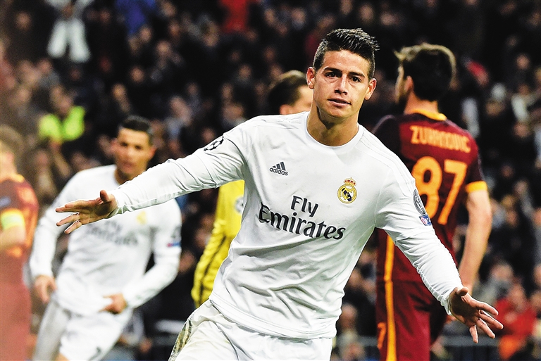 图为皇马球员J罗进球后庆祝。新华社发