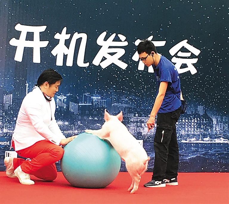 在昨天的开机现场,剧组特别安排了一只名叫“二娃”的可爱小猪进行了现场表演。在训练师指导下,“二娃”表演了“衔棒”、“等待”、“瑜伽球”、“倒退”等高难度动作,小猪“蠢萌”的形象逗笑了全场。