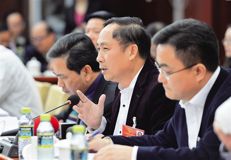 3月11日,海南代表团在住地召开全体会议,审议慈善法草案。代表们一致认为,慈善法是社会领域的重要法律,是慈善制度建设的基础性、综合性法律。制定慈善法具有重要的现实意义。图为吉明江代表发言。