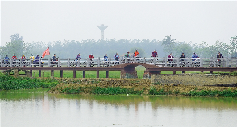 图为参加挑战赛的选手在定安高龙村骑行。本报记者 张茂 摄