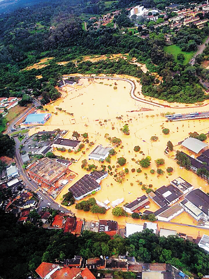 这是3月11日在巴西圣保罗以北26公里的弗朗库-达罗沙拍摄的洪灾情况。 巴西圣保罗州当地时间10日晚间至11日遭遇暴雨天气,并在弗朗西斯科-莫拉图、迈里波朗等市引发滑坡,造成包括一名4岁儿童在内的15人死亡、13人受伤,另有8人失踪。