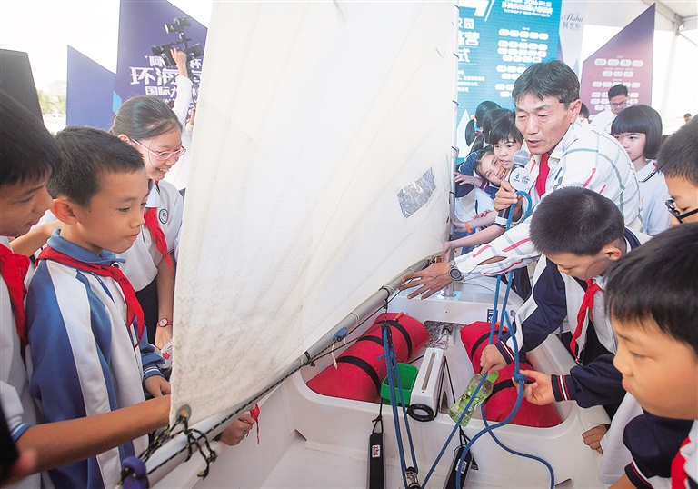当天下午,第七届环海南岛国际大帆船赛OP进校园帆船训练营开营仪式举行,80名中小学生将接受为期6天的专业帆船培训。据介绍,OP进校园帆船训练营活动旨在向三亚市中小学生推广和普及帆船运动,营造三亚帆船运动发展的良好氛围。
