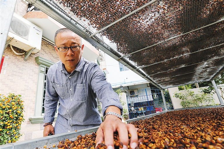黄来乡对于咖啡最早的记忆,来自小时候的艰苦生活。“那时候读书没钱,清晨5点多钟就拎着煤油灯去捡咖啡豆换钱。”坐在自家的“老华侨咖啡店”里,黄来乡忆起当年的情景,眼角爬上了笑意。孩子们捡拾的咖啡豆,被称作“小鸟咖啡”,即小鸟琢掉散落在地上的咖啡豆。早起的鸟儿有虫吃,黄来乡捡的总比别人多。那时候,1斤咖啡豆能卖到2毛钱,着实为家里减轻了点负担。